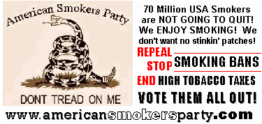The “American Smokers Party” is being started so as to give smokers a chance to know the facts about smoking and disease. We have been lied to and scammed for tooooo long!!